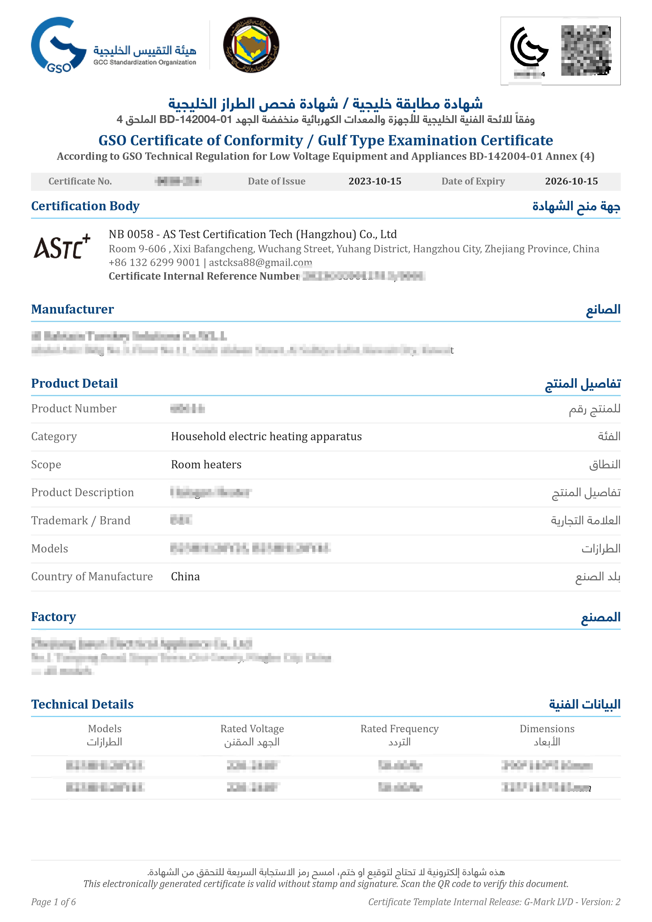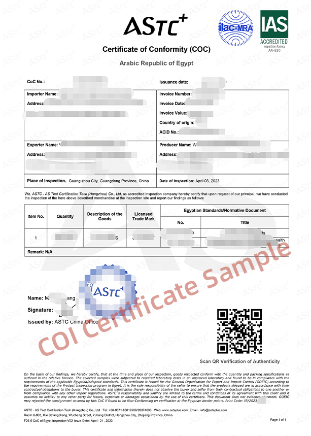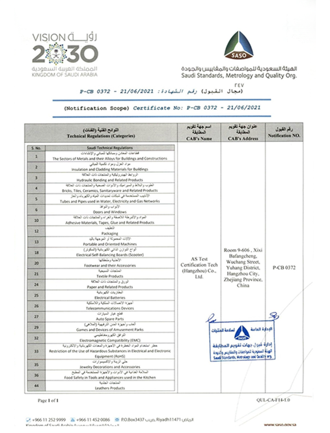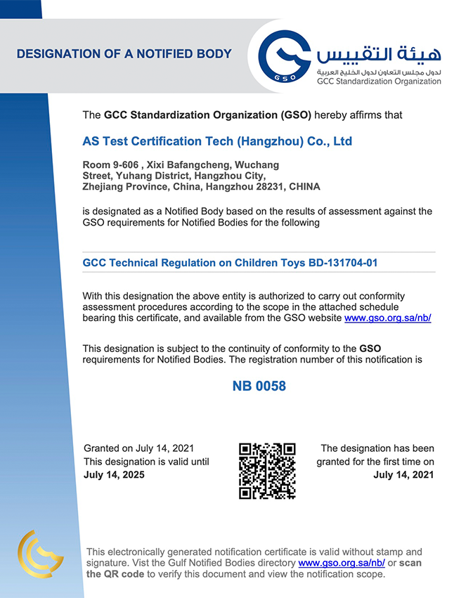ASTC+ is one third-party certification body accredited by GSO, SASO and GOEIC. We can not only issue certificates including G-Mark certificate(both for toys and LVEs), SABER PCoC and SCoC for saudi customs clearance, but also can issue COI for Egypt customs clearance.