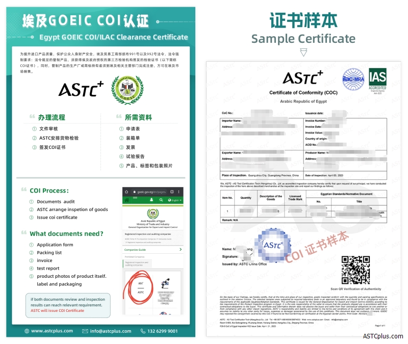 ASTC is officially authorized certification body. can issue GCC, Saber, PCoC, SC, CoC for exporting goods.